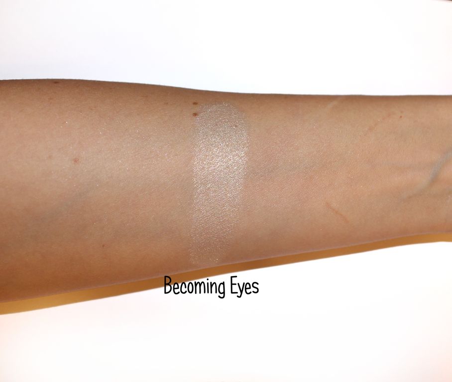 Минеральный хайлайтер Becoming Eyes раскрывается на скулах шикарным переливом из нежно-нежно розового в цвет шампанского! Эта пудра - легкий призматик, поэтому начинает играть при повороте головы под разными углами света.