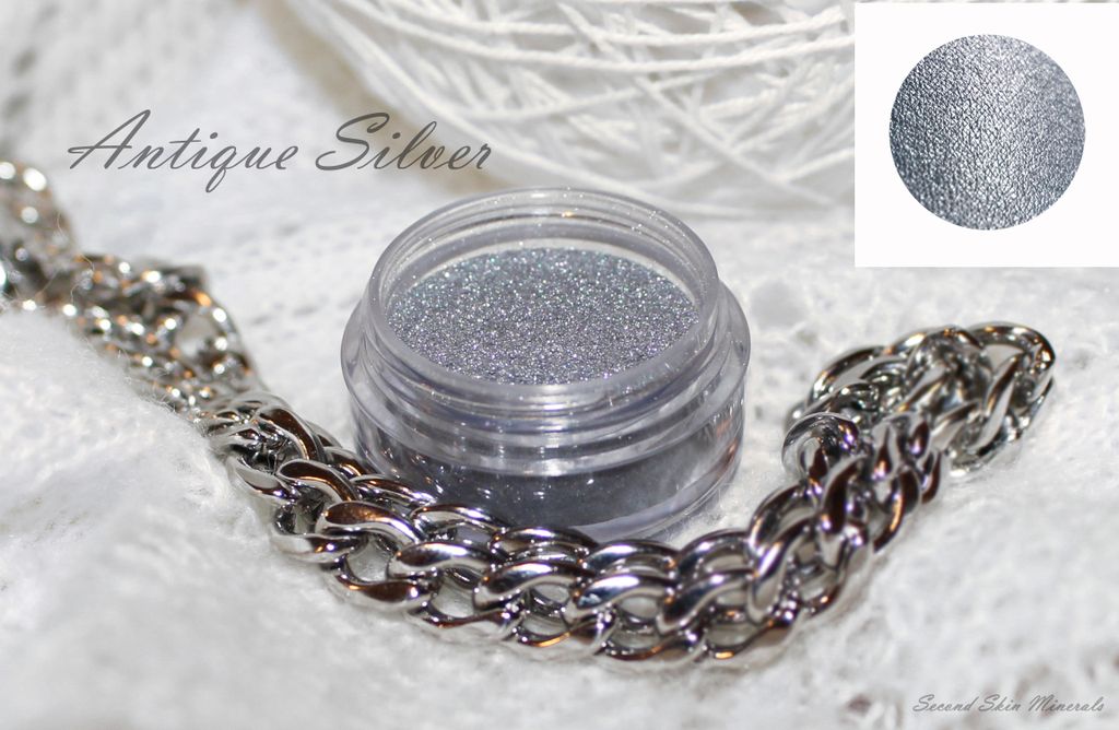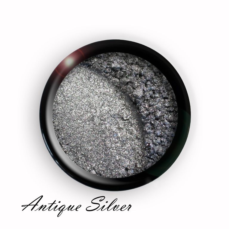 Минеральные тени Antique Silver - металлический стальной пигмент с многогранным серебристым переливом.
