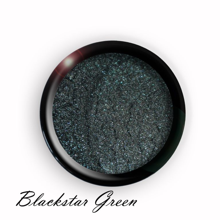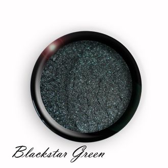 Blackstar Green – темно-зеленые тени с темно-зелеными мерцающими частичками – великолепно смотрятся и в качестве подводки, и как акцент на веках. Особенно эффектно переливаются темным цветом морской волны при нанесении влажным способом!