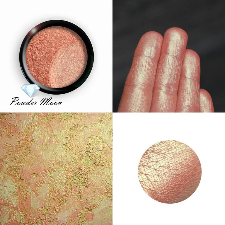 Powder Moon – дословно переводится как «лунная пудра» - название говорит само за себя – очень необычный оттенок. На персиково-розовой базе оливково-золотой отлив! Такие тени называются "призматики" или "дуохромы" - в зависимости от угла обзора и поворота головы играют и переливаются разными оттенками!