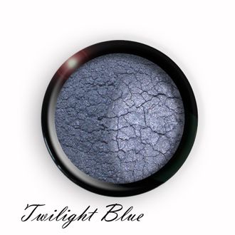 Twilight Blue – искрящиеся минеральные тени пригушенного синего оттенка с мелкими серебристыми и голубыми блесточками.
