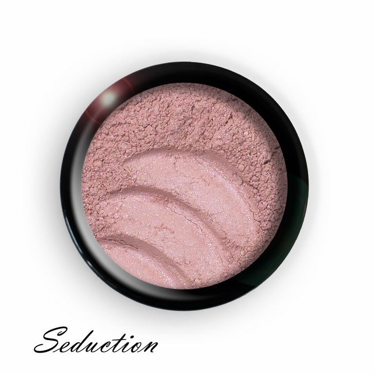 Seduction - шикарные светлые розово-персиковые минеральные румяна с легким серебристым и розовым мерцанием. Мерцание совершенно ненавязчивое и придется по вкусу даже тем, кто не любит блеск. А свежий персиково-розовый оттенок подойдет всем! Насыщенность легко контролируется количеством продукта и тщательностью тушевки.